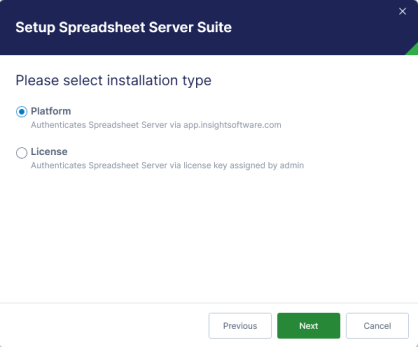 - Click Next when the first Spreadsheet Server Suite Setup window appears.