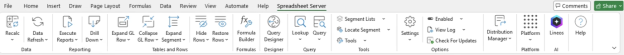 Once you install the Spreadsheet Server Suite and initiate the Excel add-in, use the Spreadsheet Server ribbon to access and process the functions in the application.