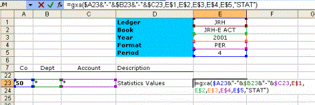=GXA("Account String","Ledger","Book","Year","Format","Period","Key 3")