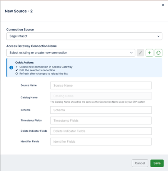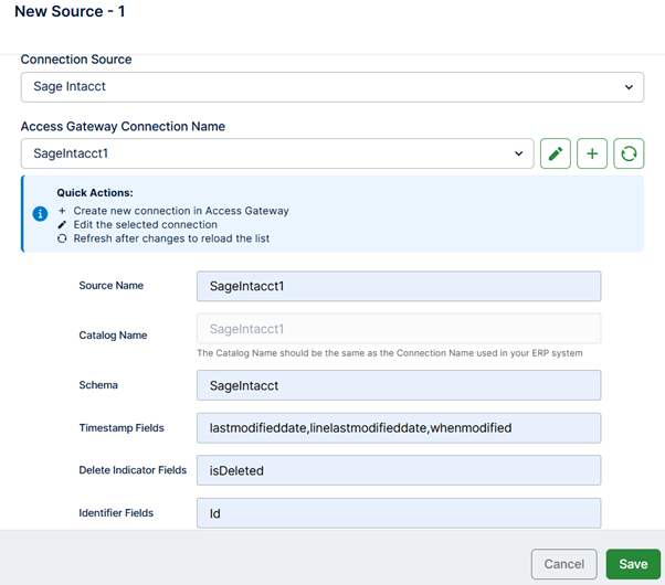 - Connection Name: Descriptive identifier (for example: "SageIntacct_Production")
