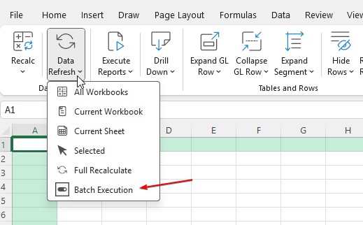 - Disable Batch Execution using the Data Refresh menu.